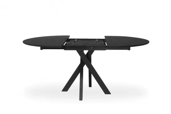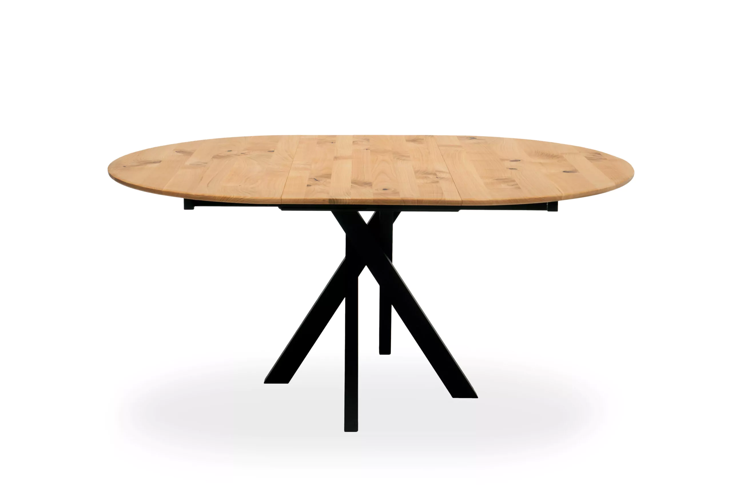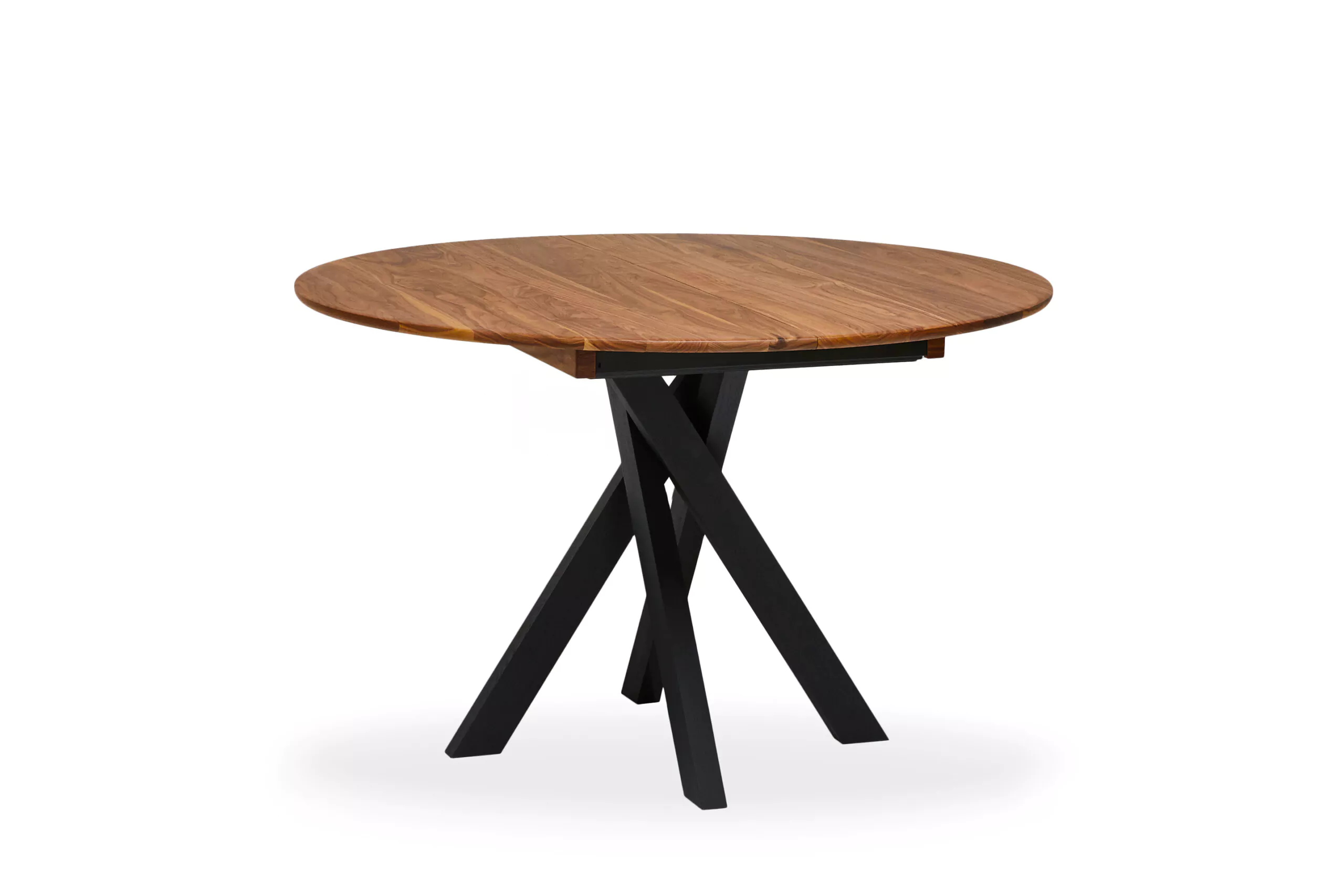 Die unterschiedlichen Kantenformen verleihen dem Tisch entweder ein filigranes, gradliniges Aussehen (Schweizer Kante) oder eine weiche, fließende Anmutung (bombierte Kante). DAVID / Mikado ist als Auszugsvariante durch eine Zusatzplatte in der Mitte zu einem Oval erweiterbar.
