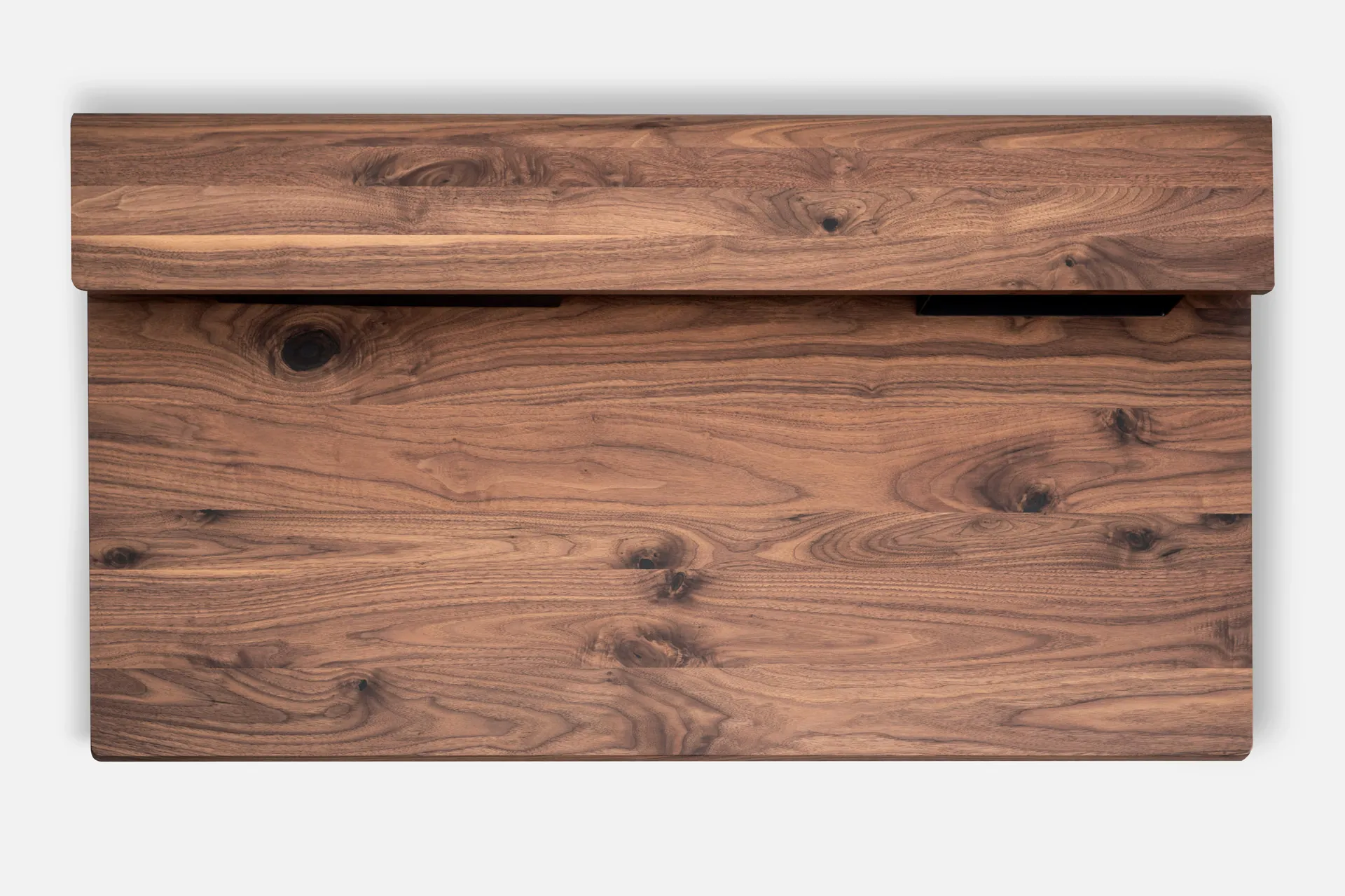 Handwerkliche Höchstleistung bis ins kleinste Detail: optisch schlägt Arkus eine Brücke zwischen Geradlinigkeit und Organik, indem Massivholzflächen in fließende Bögen verwandelt werden.